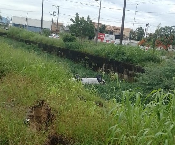 Um homem, cuja identidade não foi divulgada, ficou ferido após um carro cair dentro de um valão no Canal do Saco, na Rua José Naked, no Parque Esplanada, em Campos, na manhã desta segunda-feira (11).
