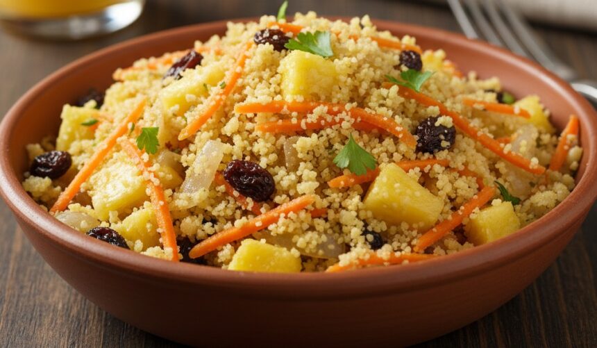 Adicione a cenoura, as passas e o abacaxi, mexendo por 2 minutos.